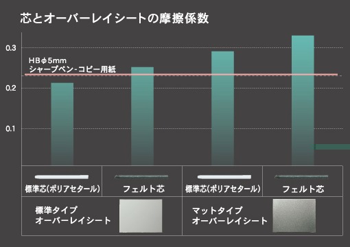 Intuos3の特徴は「書き味」を追求できること。特に、標準・フェルトのペン芯と、標準・マットタイプのオーバーレイシートを組み合わせることで摩擦係数を上げます。従来機種の「ツルツルして描きにくい」という不満を解消し、好みの書き味に近づけることが出来ます。